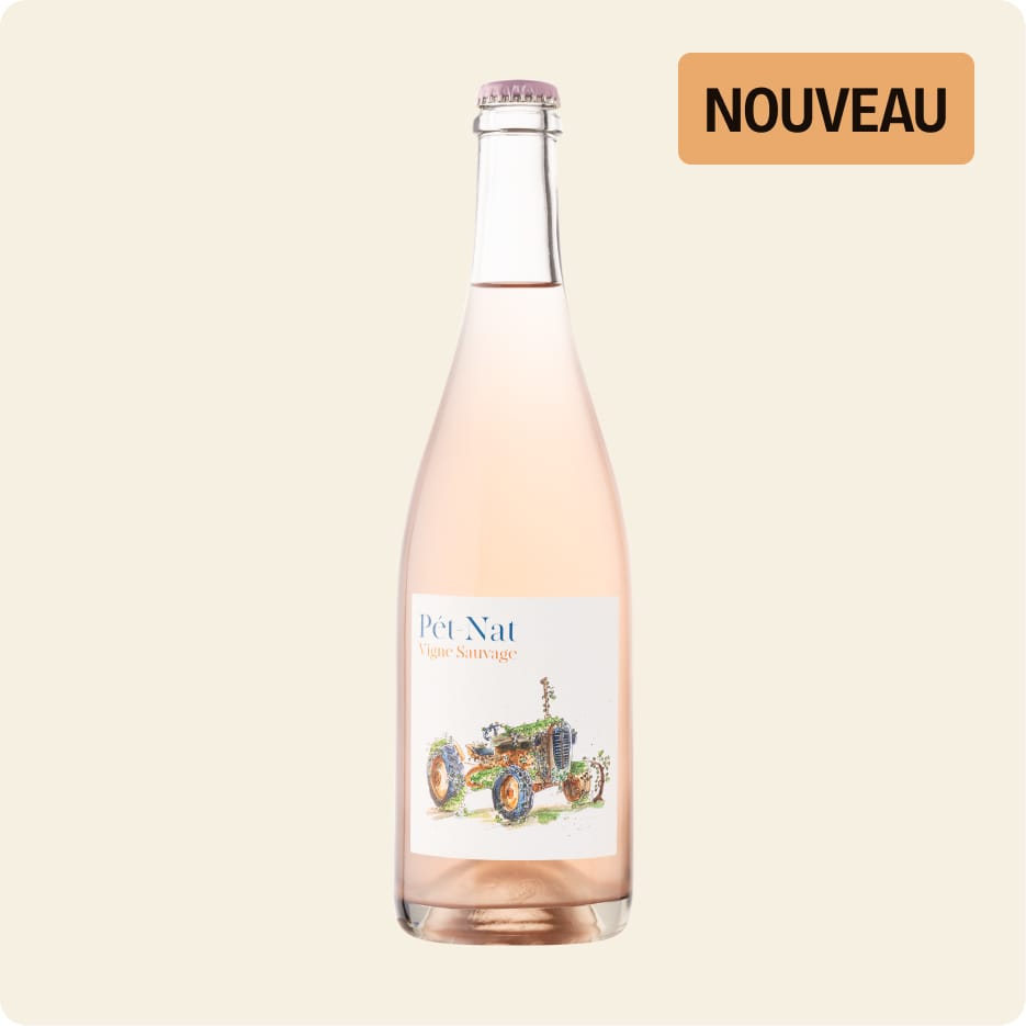 Pét-Nat Vigne Sauvage : Un rosé vibrant et fruité, avec une robe rose pâle naturellement voilée. Nez de fraise des bois et de petits fruits rouges. La bulle est fine, la texture tendre, la finale légèrement saline.